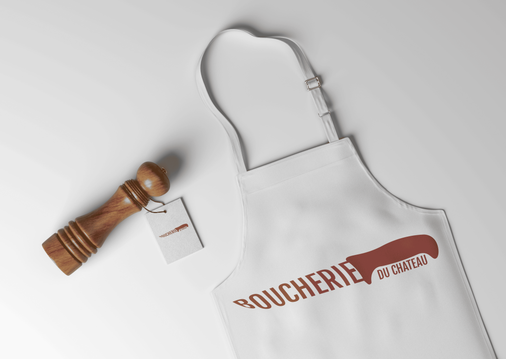 Située au pied du château de Montbéliard, la Boucherie du Château se distingue par sa volonté de proposer des pièces de viande de qualité. Dans le cadre d’un exercice de design sur Illustrator, j’ai choisi de travailler sur un projet fictif autour de cette boucherie, avec pour objectif de m’exercer à la création de formes simples et de designs attrayants et efficaces. Mon ambition était de concevoir un logo inspiré par un couteau de boucher, emblème iconique de la profession.